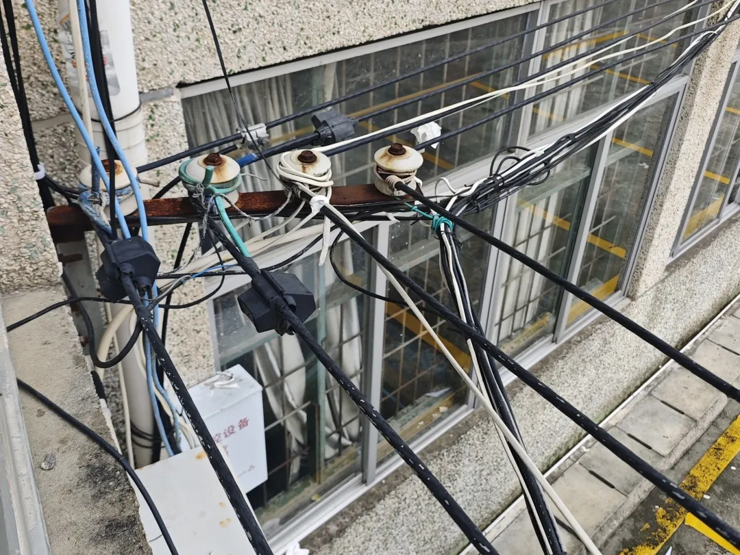 教学楼建于上世纪90年代,主电线及分支线路同样老化严重,频繁跳闸,难以支撑现有教学设备的用电需求。