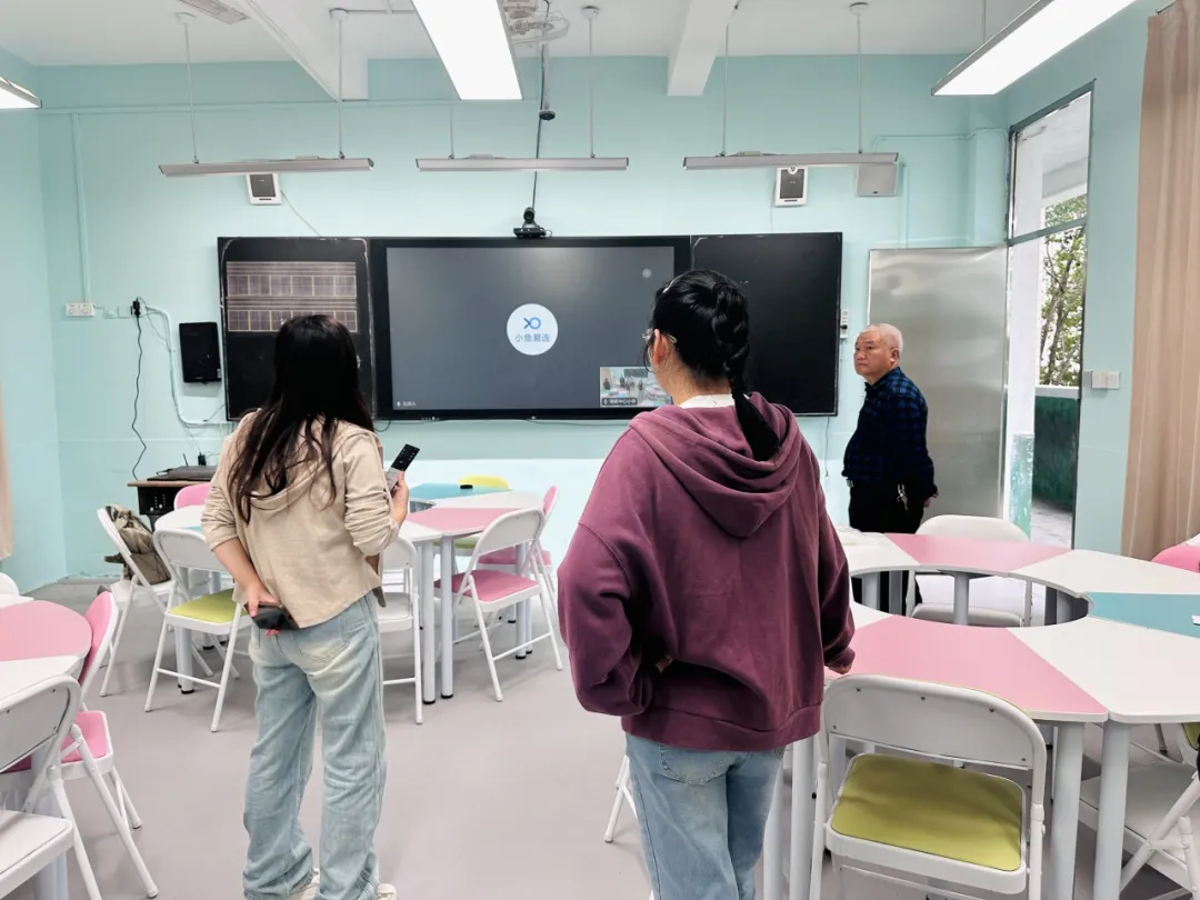 At Xuancheng Primary School, the project team inspected the operational "Tomorrow's Classroom." When discussing the online reading and writing courses, Teacher Wu shared delightedly, "The techniques taught by the online instructors have been highly beneficial for the students." During the visit, we also conducted a focused assessment of the school's restroom facilities. School representatives reported issues such as missing toilet stall doors, which compromise children's privacy, as well as persistent odor problems requiring improvement. The project team has documented these concerns in detail and will actively explore viable solutions. Furthermore, the classroom environment has been noticeably enhanced through the installation of new curtains and upgraded lecterns. A teacher remarked, "The new curtains provide excellent shading, making it much easier for students to view the digital screen during lessons. The issue of screen glare has been completely resolved."