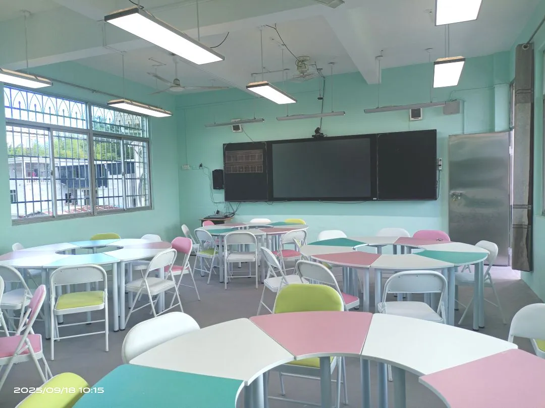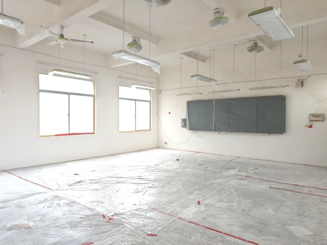 从拆除旧地台、铲除墙皮开始,我们一点点重塑这个空间——墙面重新粉刷,地面铺上环保地塑,远程互动设备安静安装,整齐的桌椅排列等候。这里不再只是一间教室,而是通向未来的起点。