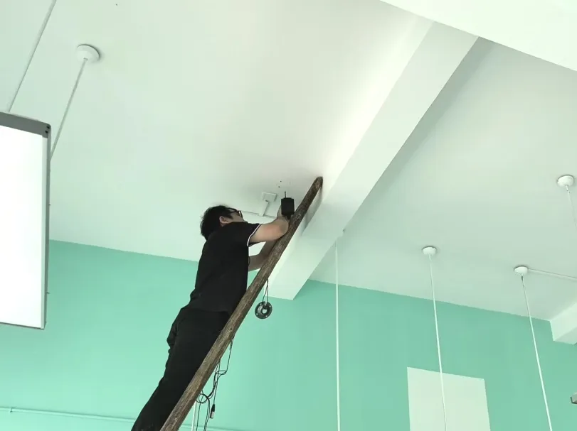 在馆前中心学校“明日教室”的初步调试中,由于教室窗户数量较多,环境因素干扰较大,设备在收音效果方面尚未达到最理想状态。为彻底解决这一问题,我们将联合学校继续对教室吊顶进行进一步升级改造,以优化声学环境,确保授课声音清晰传达。